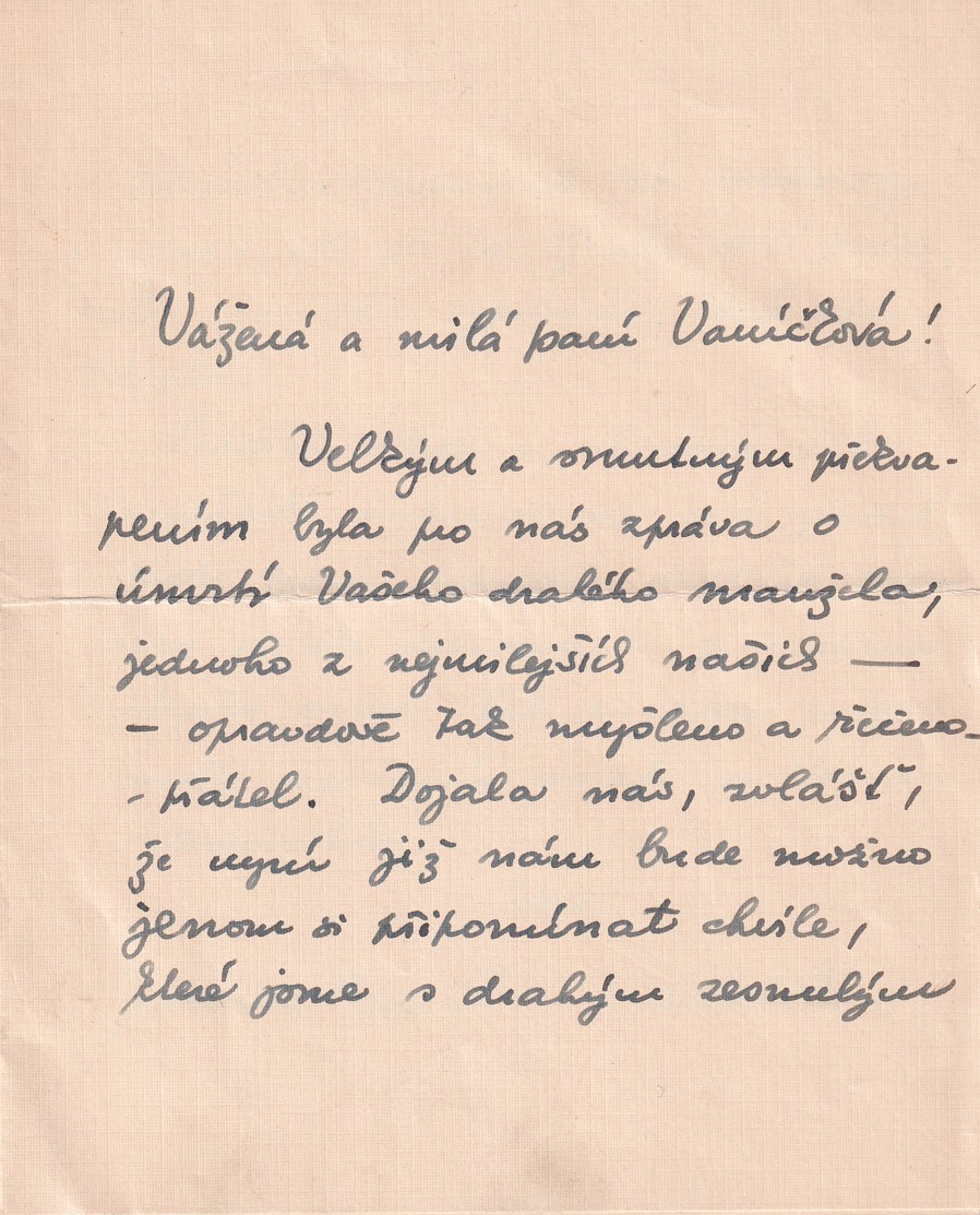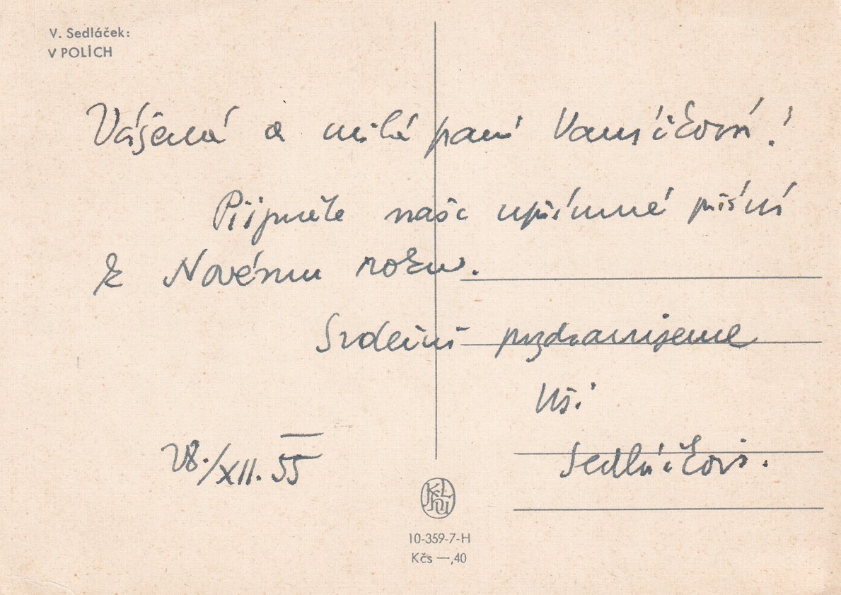 adresováno paní Vaníčkové, kondolence a novoroční přání, z pozůstalosti malíře Bedřicha Vaníčka