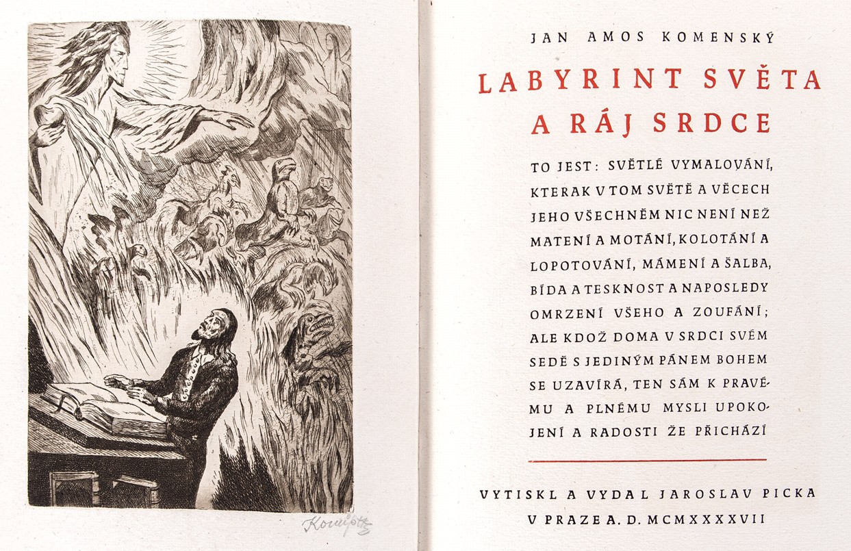 sign. lept ve frontispisu a výzdoba J. Konůpek, z Menhartova písma "Hollar" s pomocí Jaroslava Duchana vysázel a vytiskl Jaroslav Picka, ruční papír z Velkých Losin, první sv. edice Monumenta genii bohemici, ex.: 25/96, celokožená vazba s kovovým ornamentem na předních deskách, kart. pouzdro, 187s., výborný stav