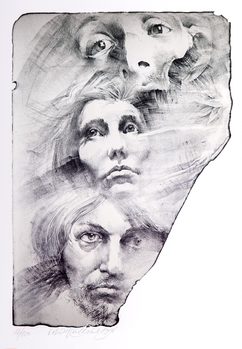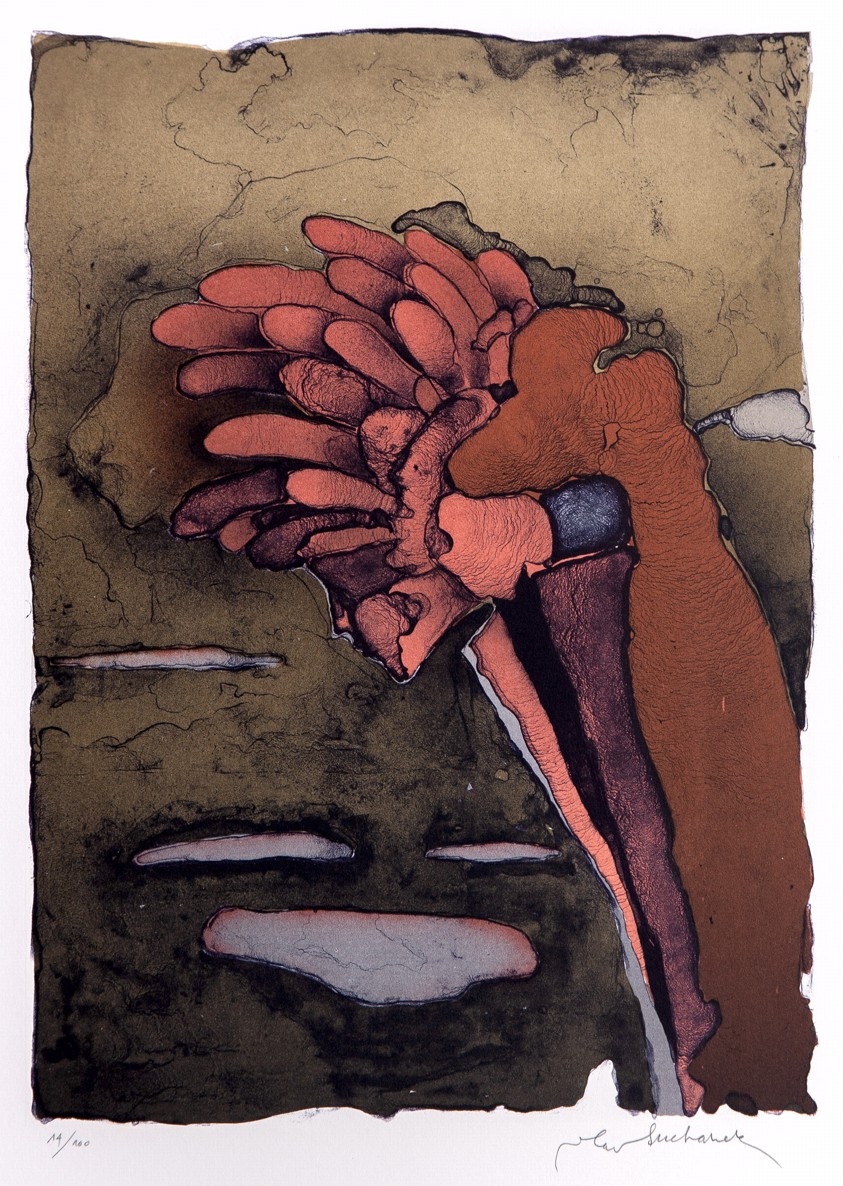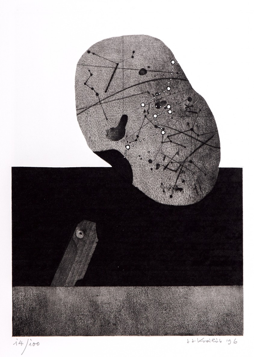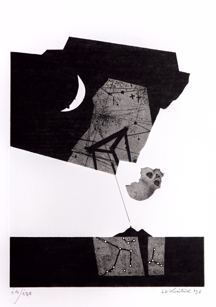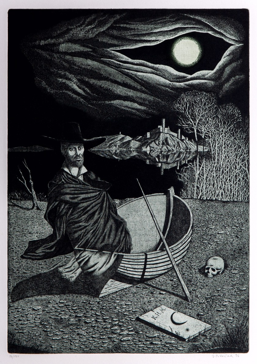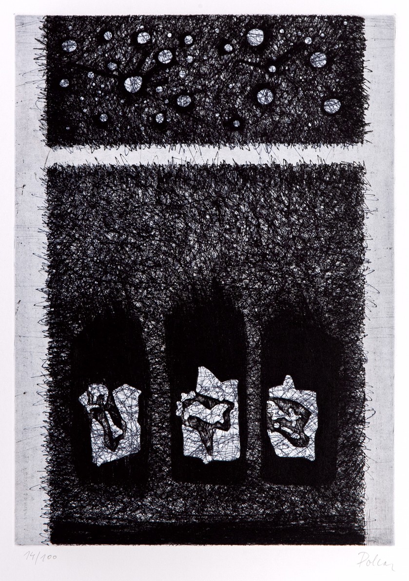 24 grafických listů 12 členů SGU Hollar: James Janíček (2 lepty), Zdenka Kabátová-Táborská (2x suchá jehla), Vladimír Komárek (dvě suché jehly), Jaroslav Králík (2x kombinovaná technika), Oldřich Kulhánek (2x litografie), Ondřej Michálek (2x linoryt), Jindřich Pileček (2 lepty), Miloslav Polcar (2x lept), Jan Souček (2 lepty), Vladimír Suchánek (2 litografie), Jaroslav Šerých (dva lepty), Lenka Vilhelmová (2x kombinovaná technika), vyd. Český spisovatel a Osmium, Praha 1996, soubor obsahuje knihu v kart. pevné vazbě, 24 stran, 25 x 35 cm a 24 podepsaných grafických listů, ex.: 14/100, polokožené ochranné pouzdro se zlacením, výborný stav