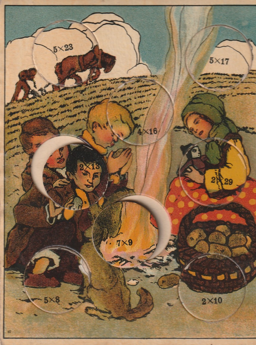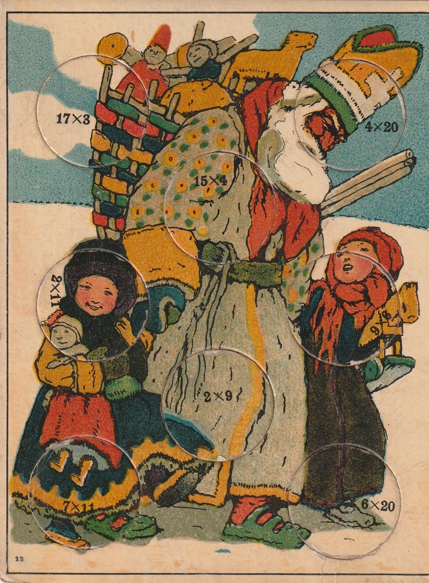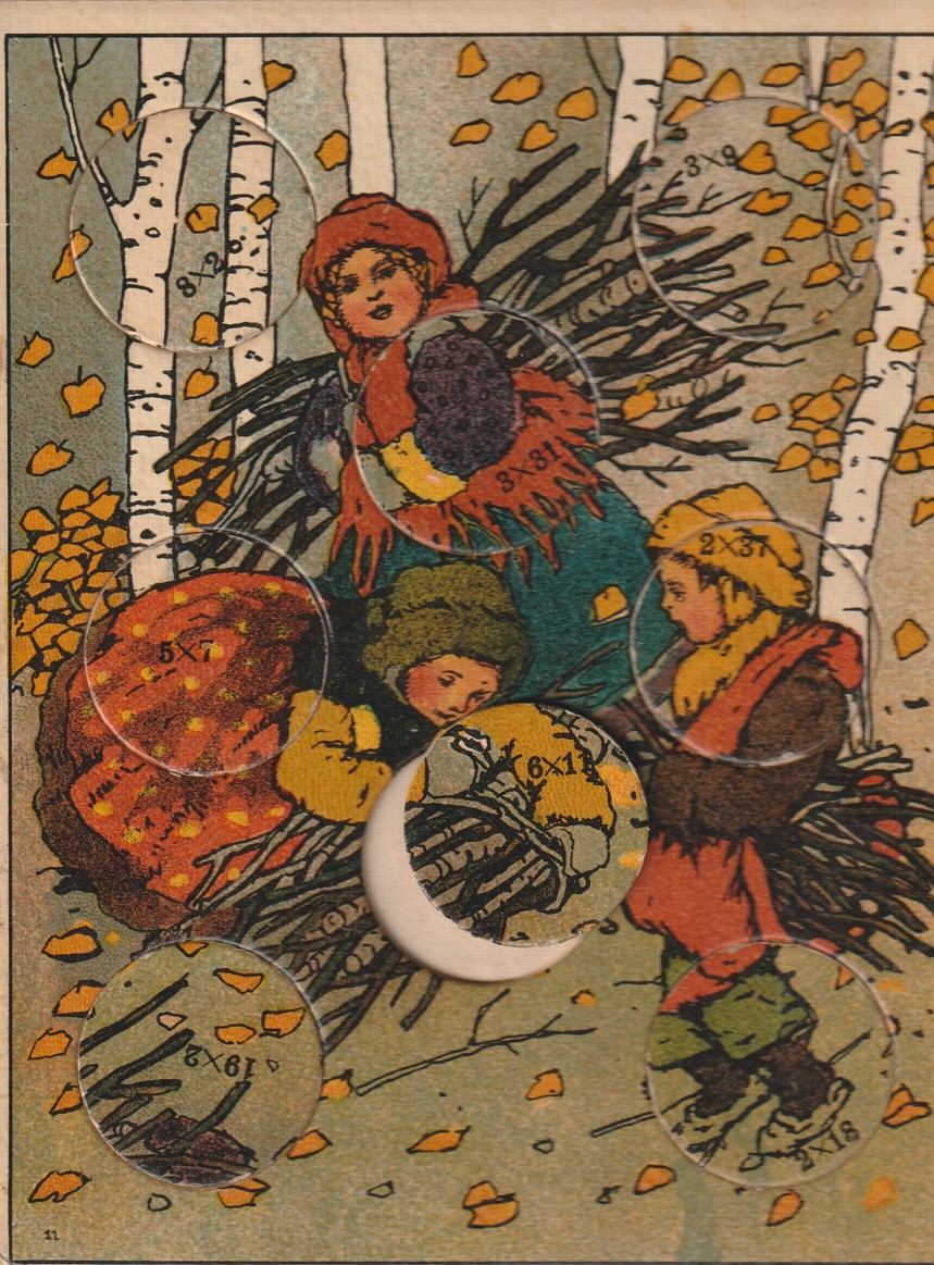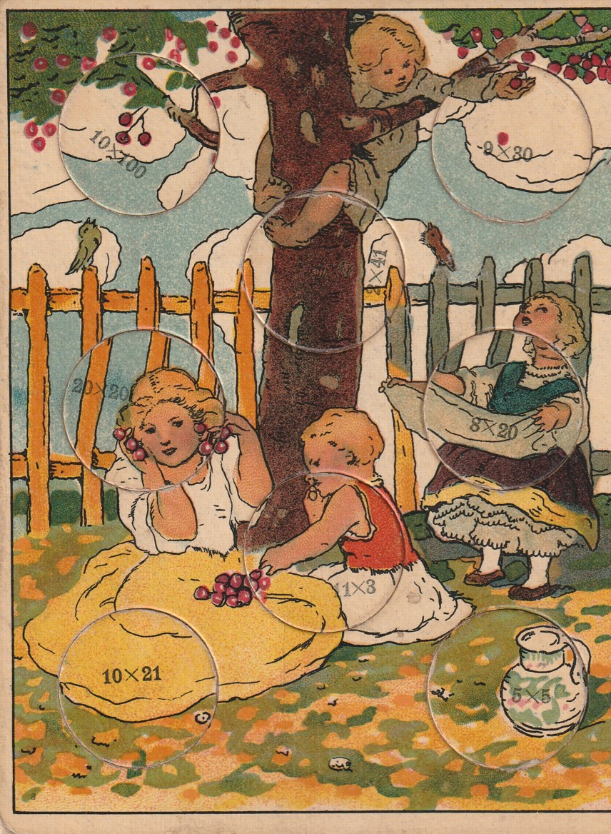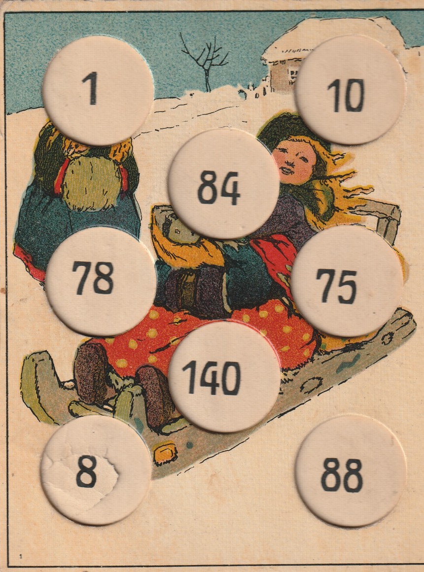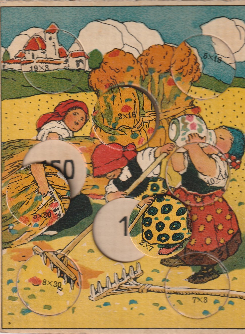 početní hra z druhé poloviny 19. století, 8 kartonových desek s žetony, žetony kompletní, dobrý stav