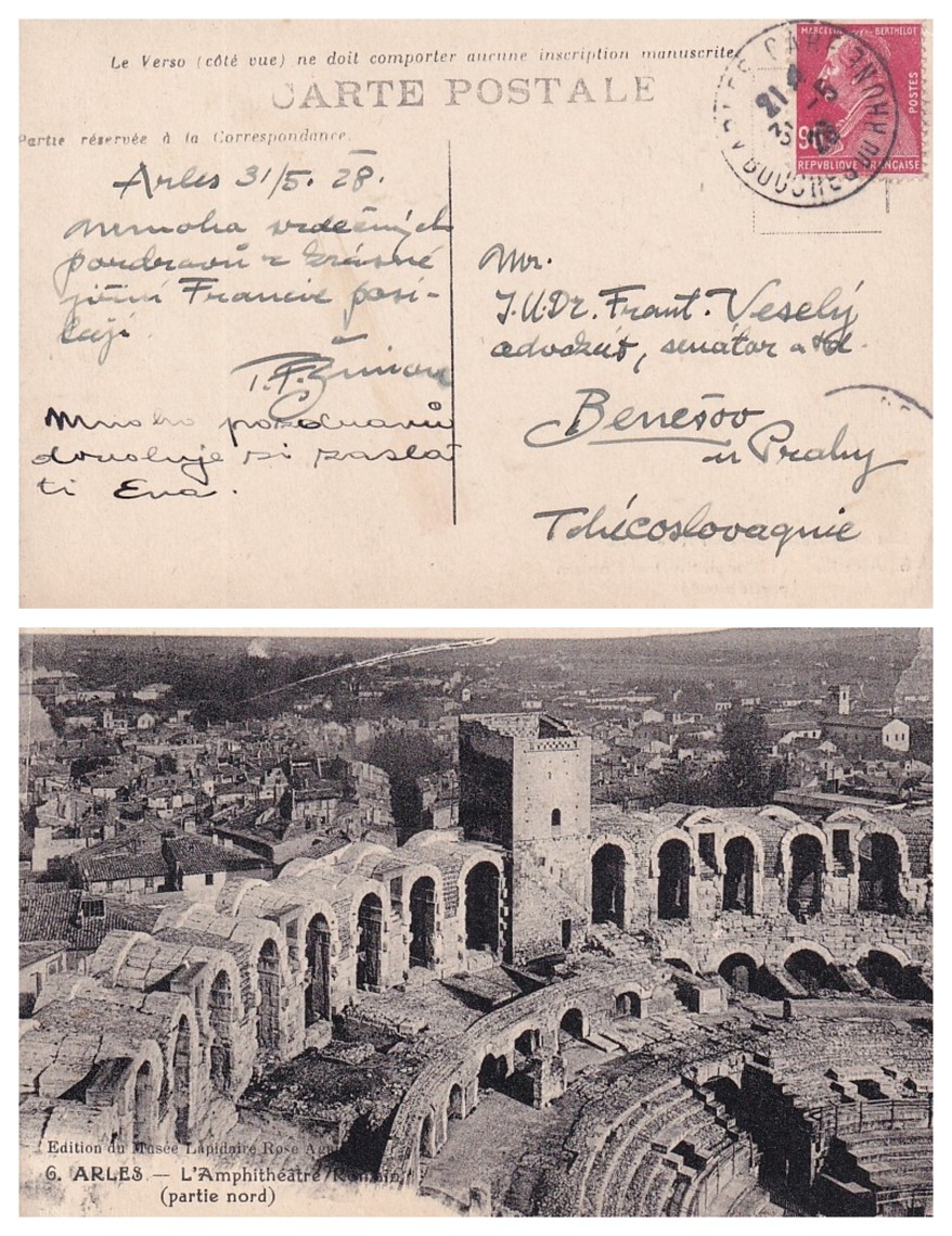 ručně psaný text a podpis na pohlednici, r. 1928, dobrý stav
