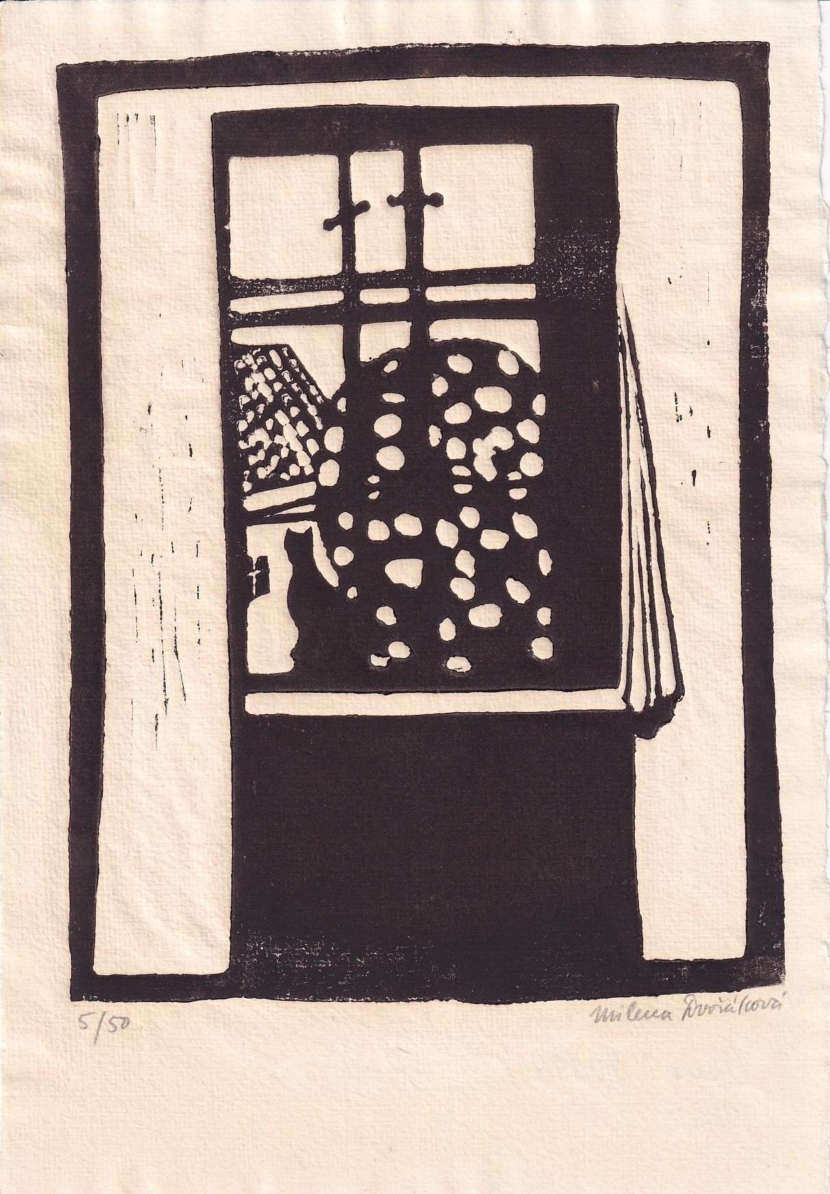 Technika: dřevoryt na ručním papíře