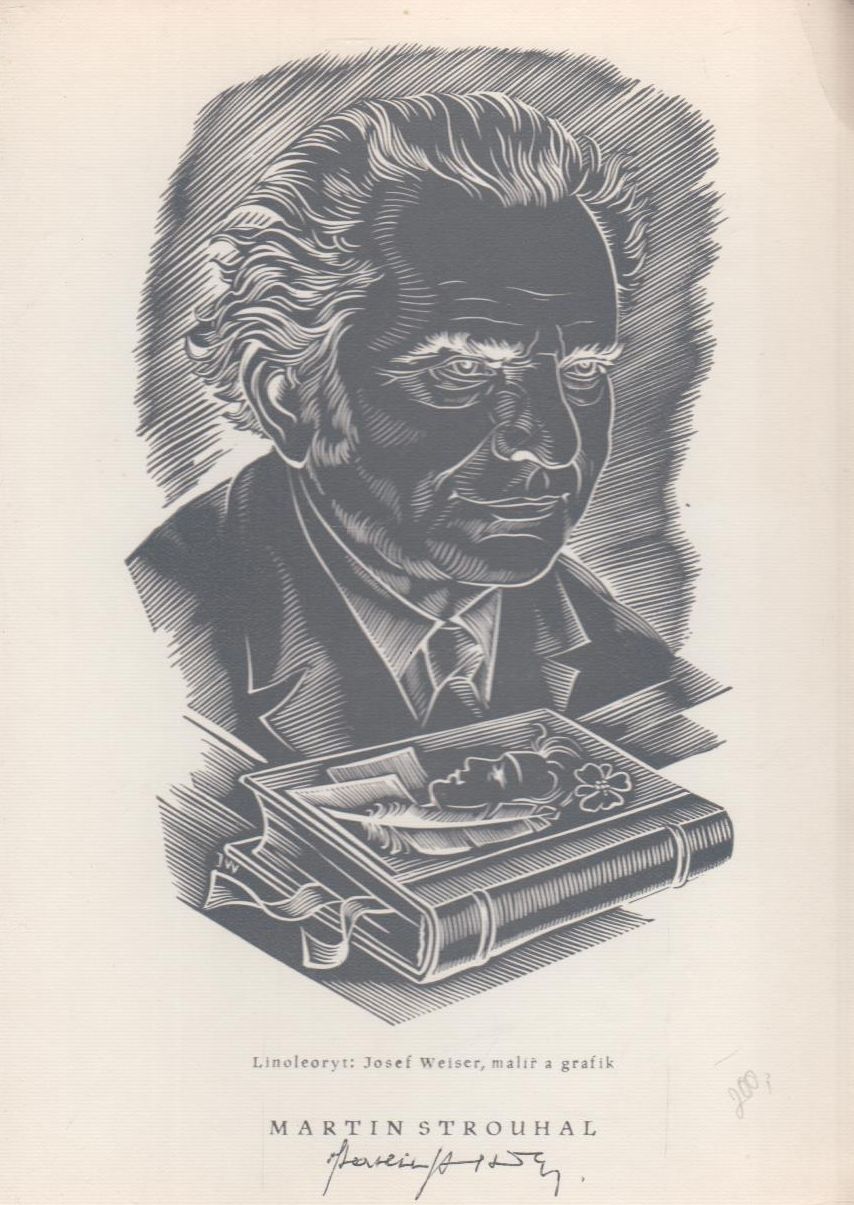 přiložen linoleoryt Josefa Weisera